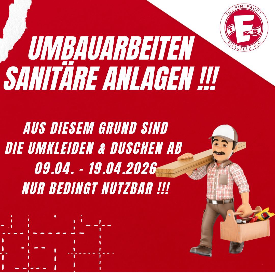 Umbau sanitäre Anlagen vom 09. April bis 19. April 2026 !